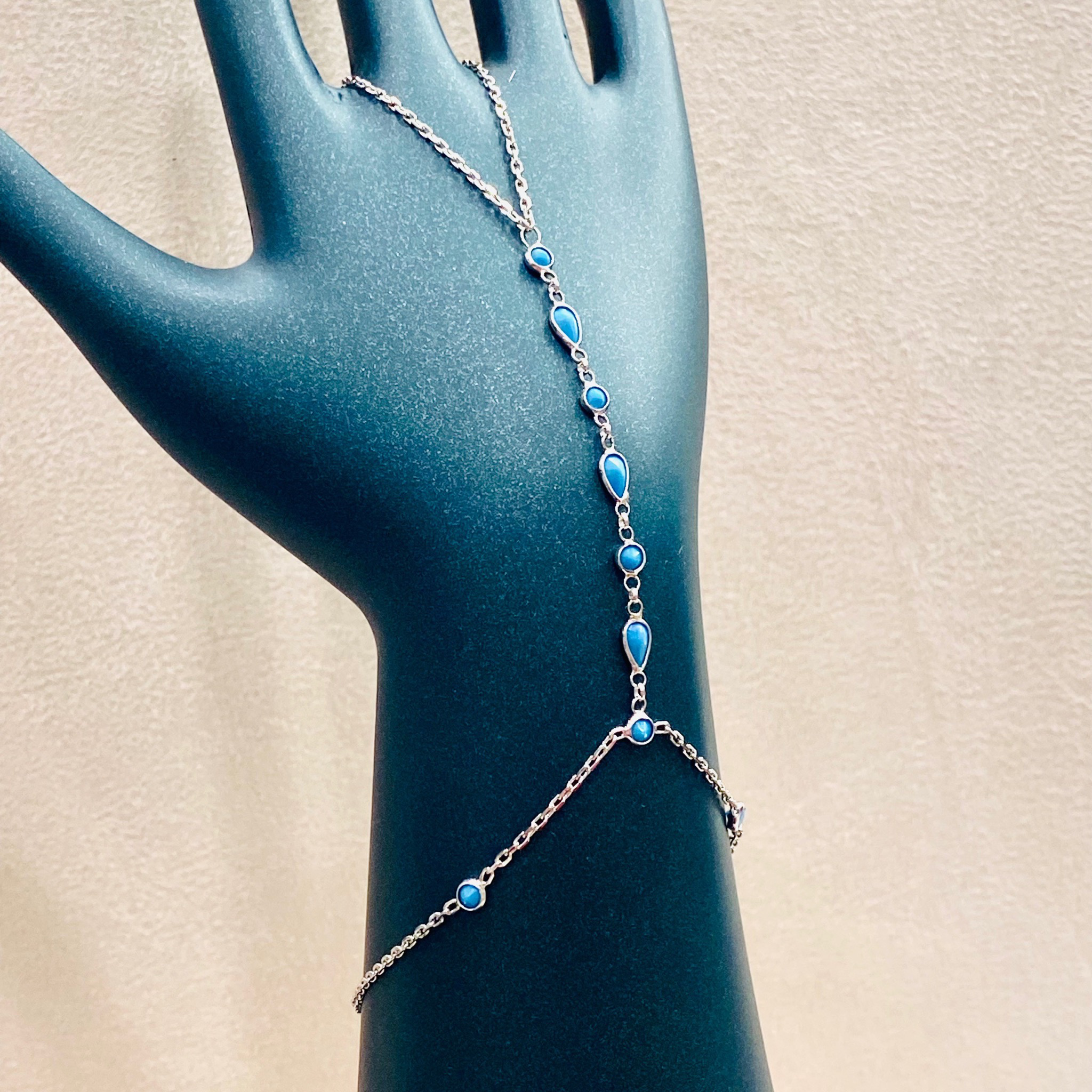 Baciamano in argento 925 con gocce turchesi 4mm. Misura: Taglia unica