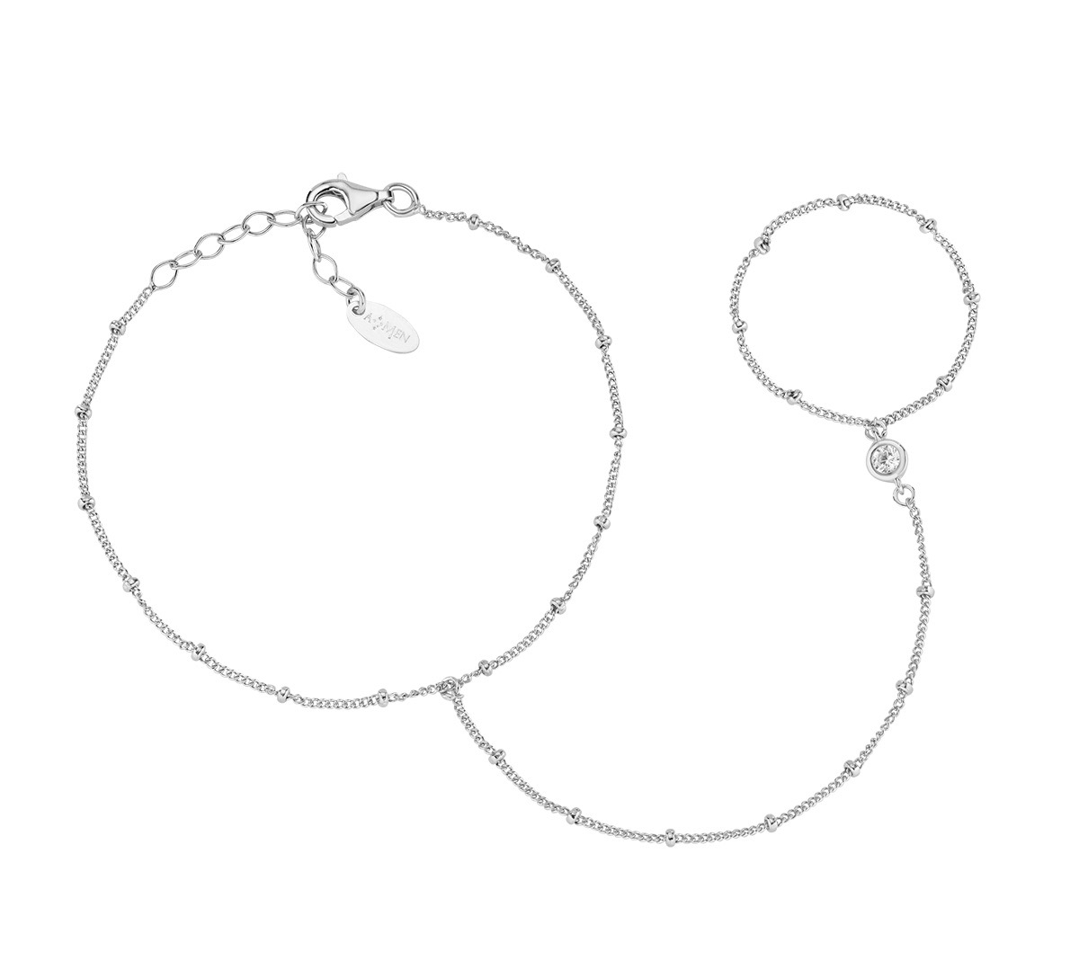 Baciamano in argento 925 con catenella a palline alternate con punto luce finale zircone 4mm. Misura: Taglia unica
