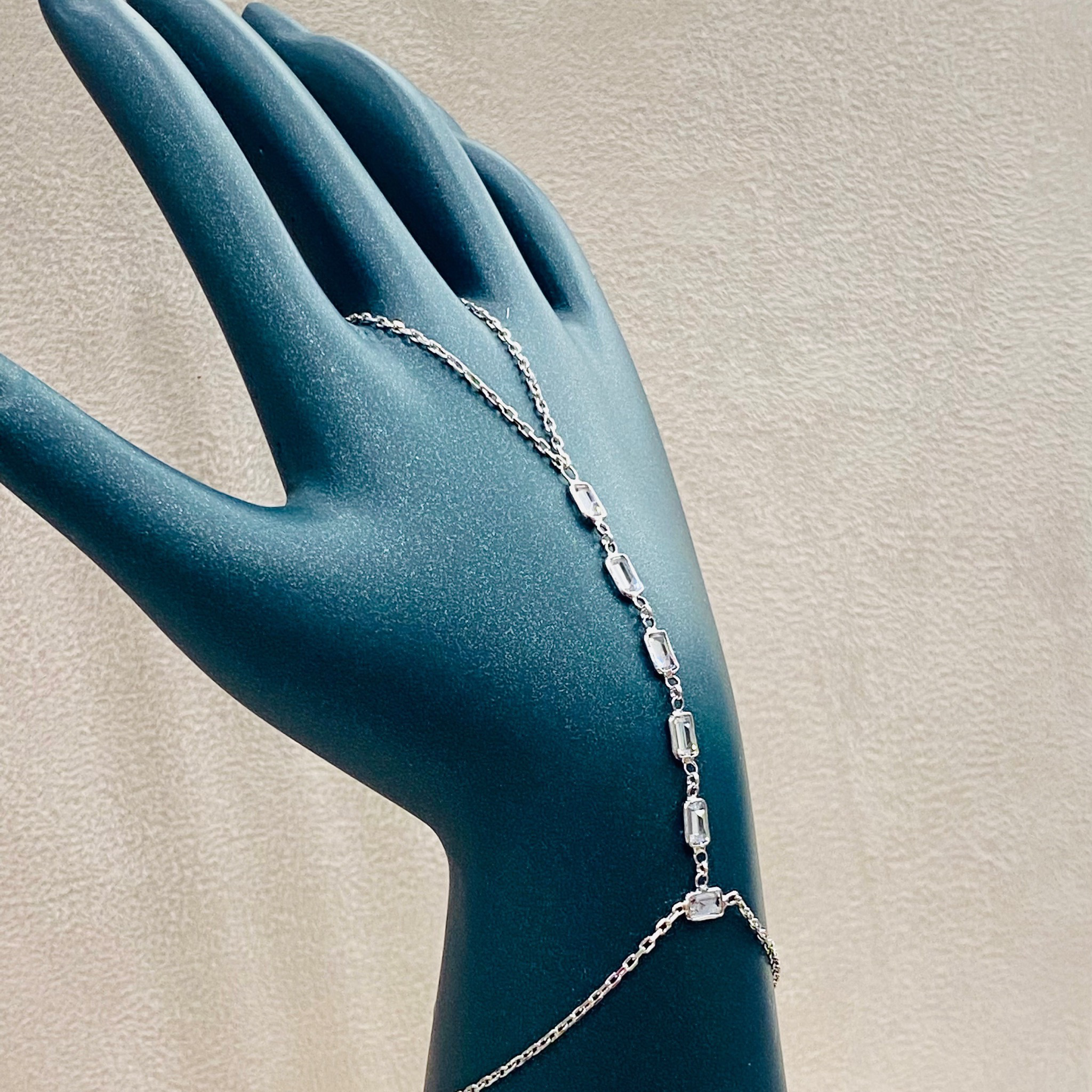 Baciamano in argento 925 con corredo di punti luce rettangolari zircone 6mm. Misura: Taglia unica