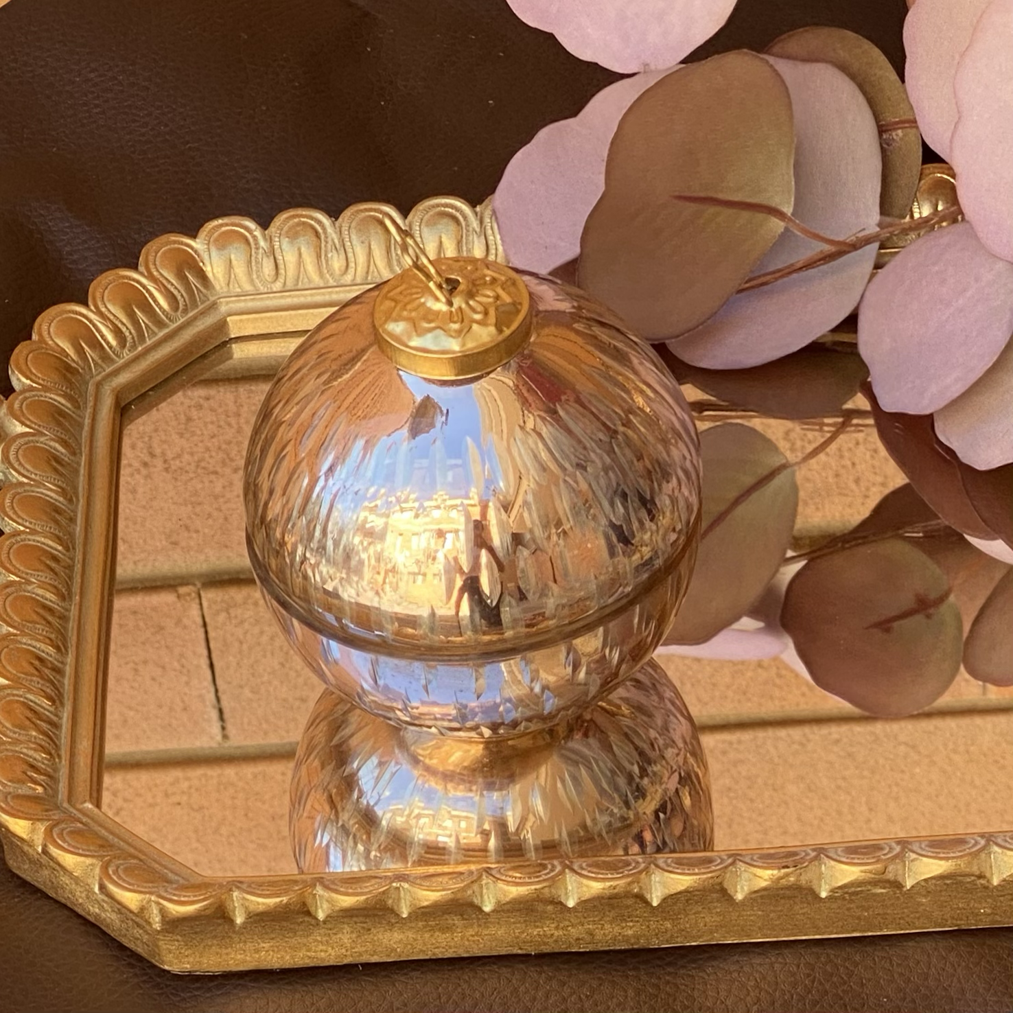 Candela profumata, contenuta in un delizioso scrigno in vetro color rosa antico .