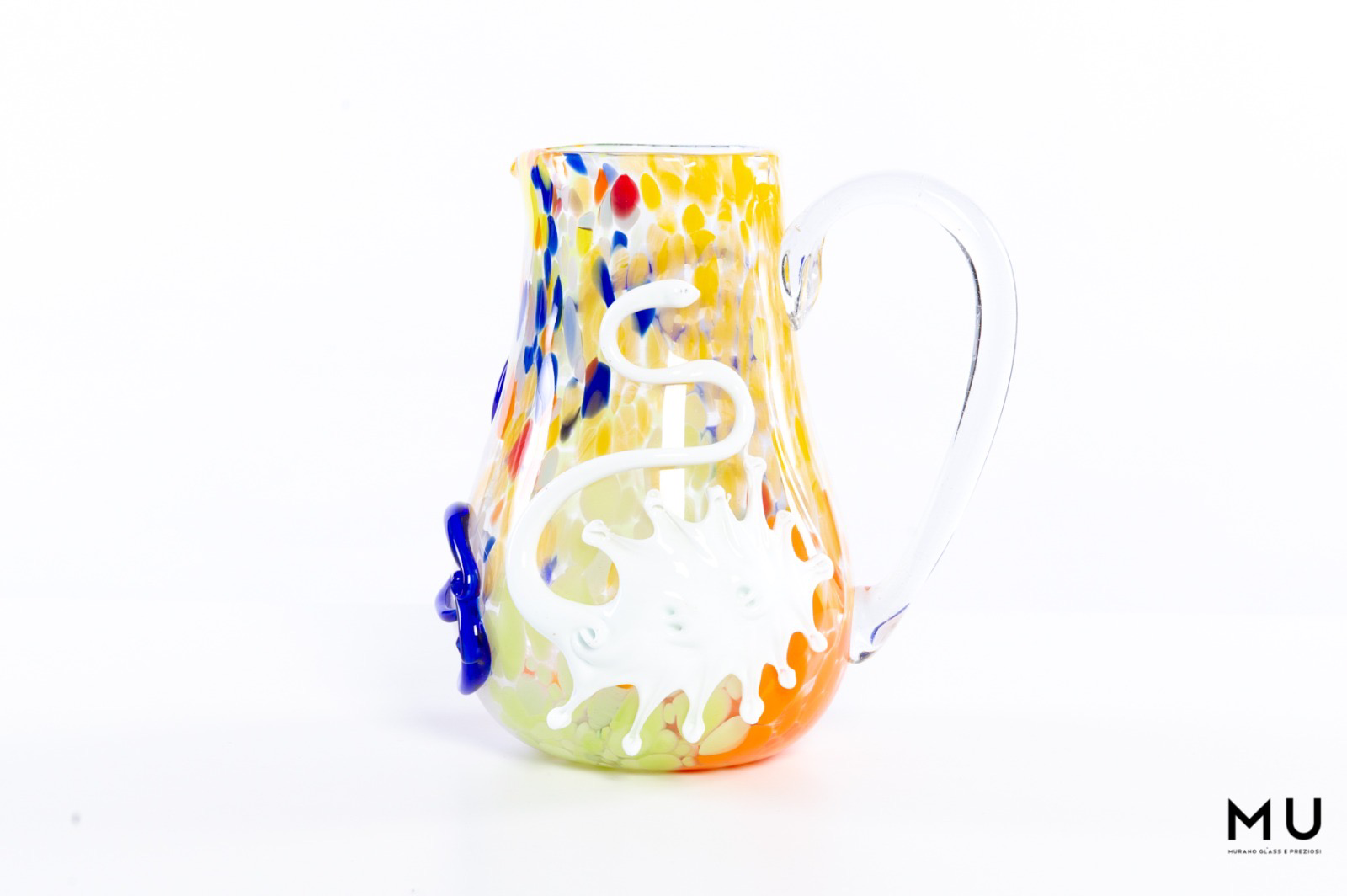 Caraffa in vetro di Murano , decorazione ispirata all’artista Gaudì. Realizzata dai maestri verrai della Vetreria Murano Design.