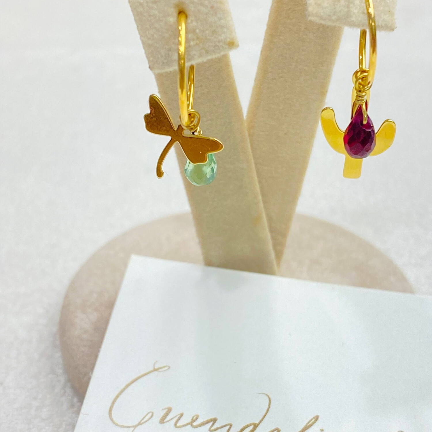 Orecchini in argento placcato oro multicharms in pietre naturali. Acquistabili singolarmente.