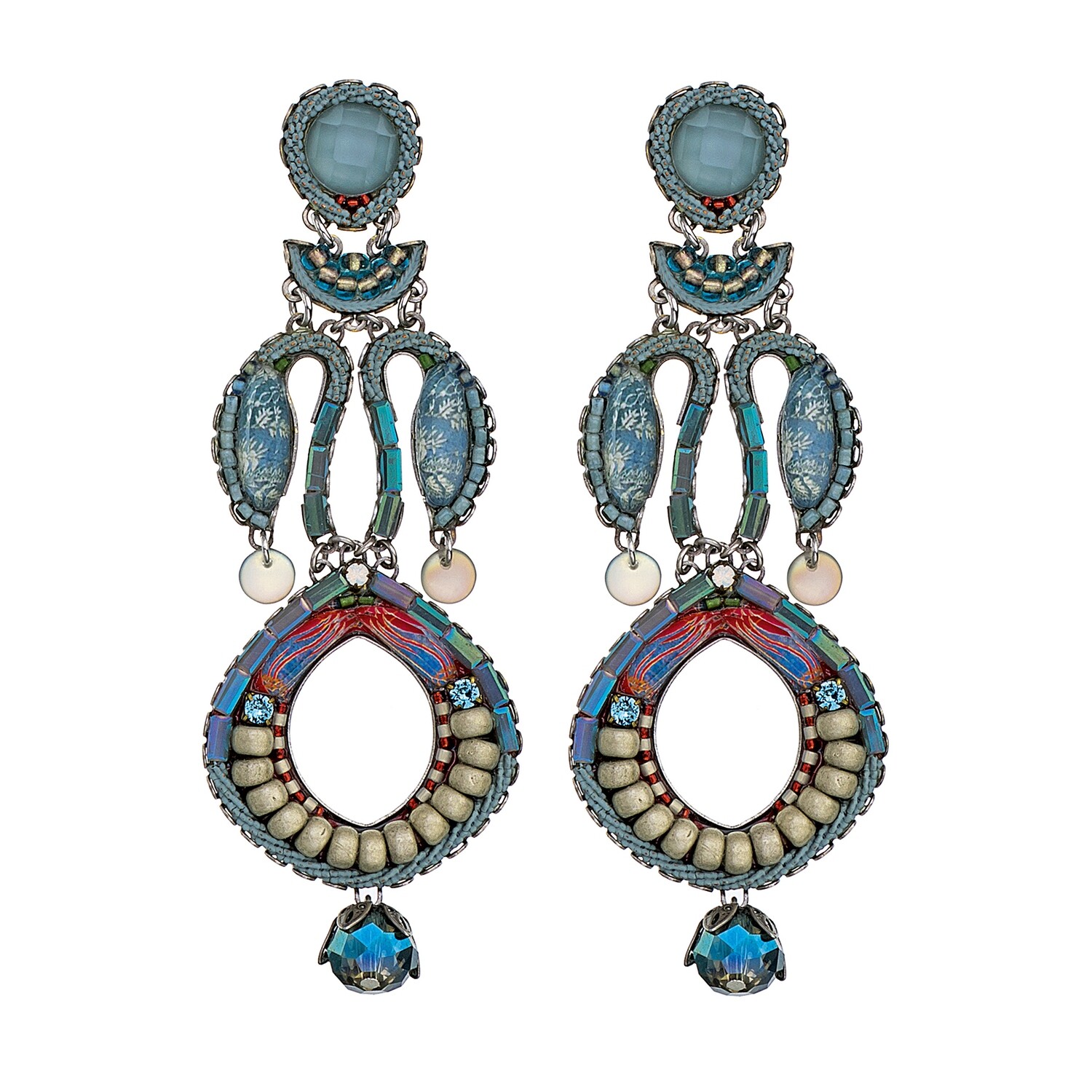 orecchino pendente mosaico vetro , cristallo stoffa cm 10