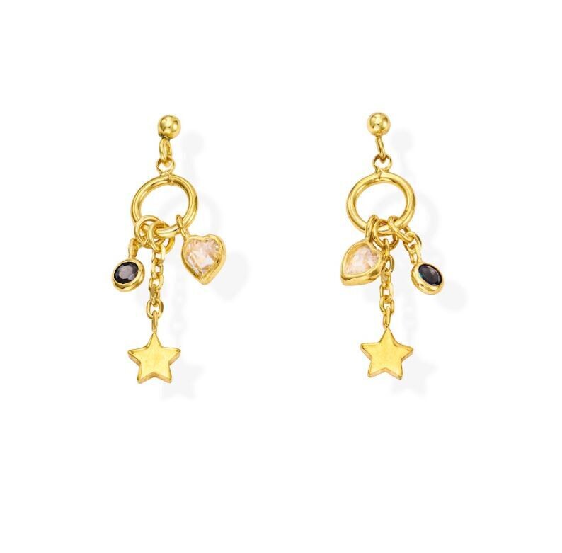 orecchino pendente arg 925 placato oro cerchietto e charms cristalli 3,5cm