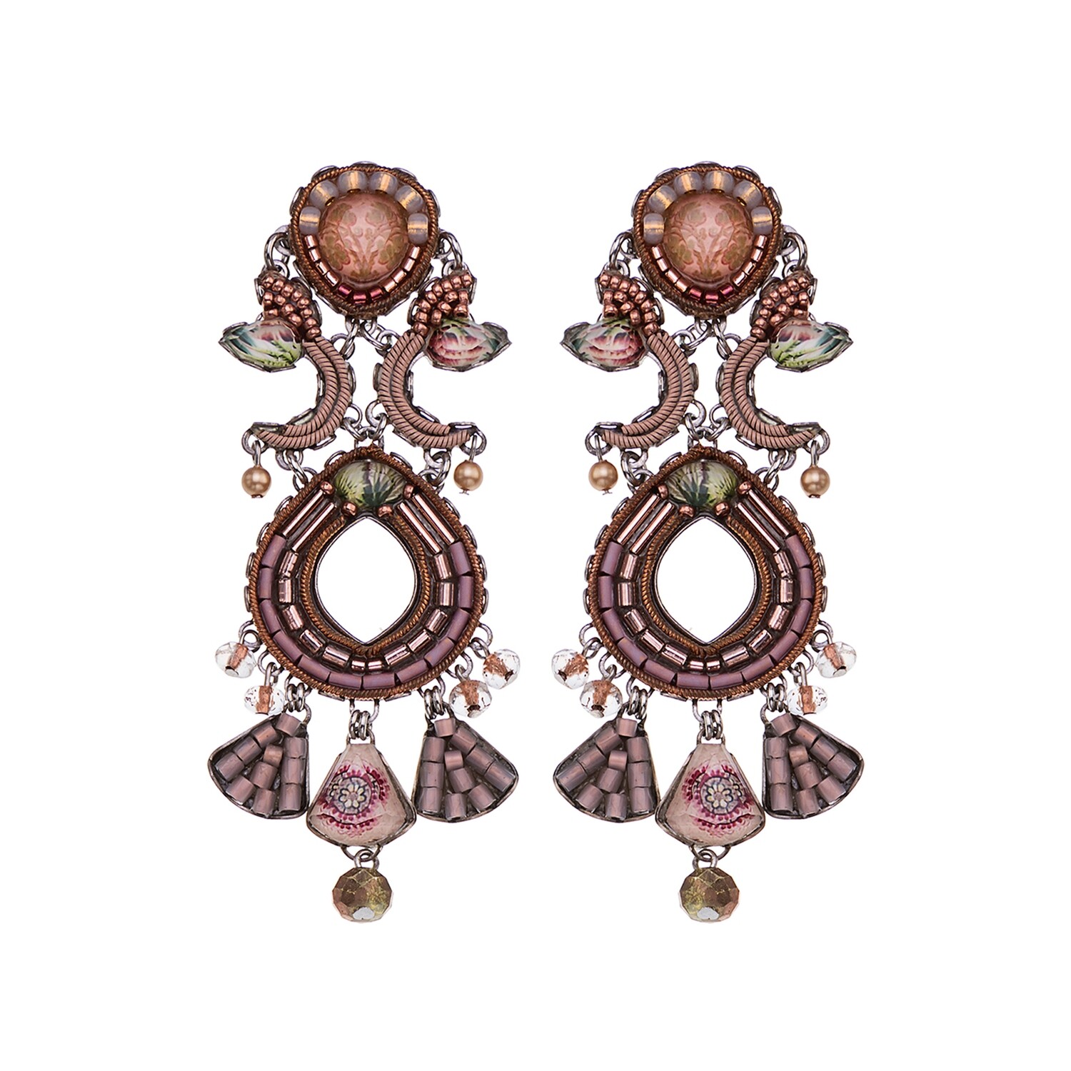 orecchino pendente mosaico vetro , cristallo, stoffa cm 8