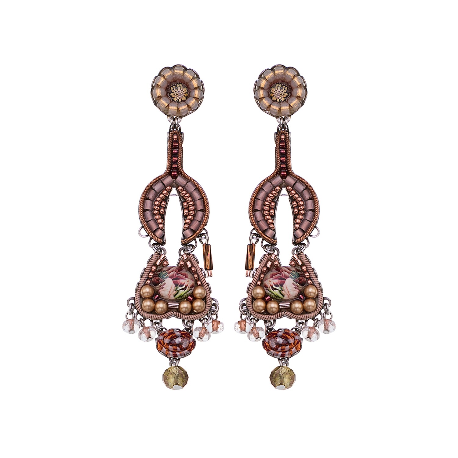 orecchino pendente mosaico vetro , cristallo, stoffa cm 7