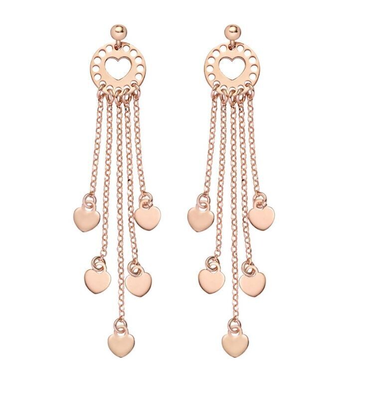 orecchino arg 925 placato oro rosa pendente cascata cuori