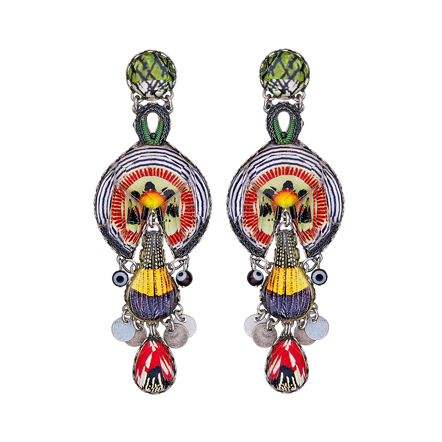 orecchino pendente mosaico vetro , cristallo, stoffa cm 8
